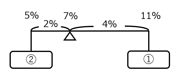 A:5%ー①ー7%ー②ー11%:C