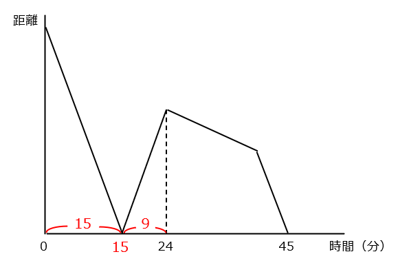 グラフの最後、45分のタイミングで出会っていること、それが2回目であることに注目します。